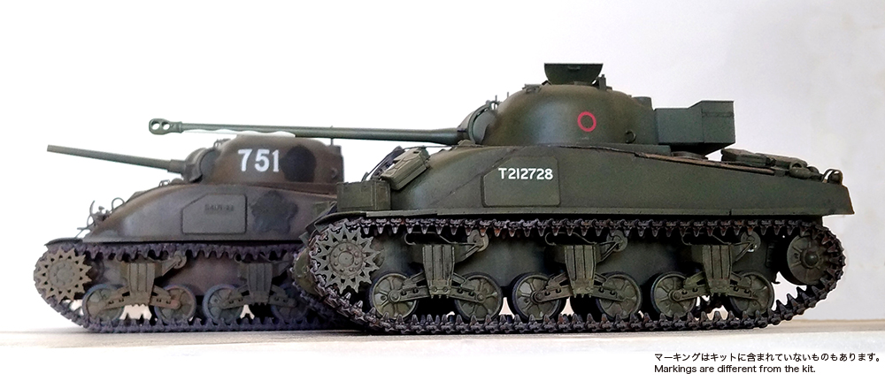今月はアスカモデルキット1月の売上ランキングです。1位の「【35-051】1/35 アメリカ中戦車 M4 コンポジットシャーマン ”キューピッド”」と3位の「【35-028】1/35 シャーマン ファイアフライIC コンポジット車体 アクセサリー付」を並べてみました。