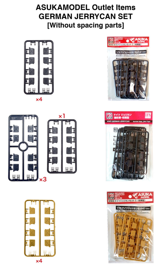アスカモデルアウトレットアイテムページでは紙スペーサーが付属しないドイツジェリカンセットも販売中です。