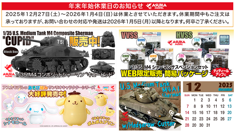アスカモデル公式オンラインショップ年末年始休業日のお知らせ