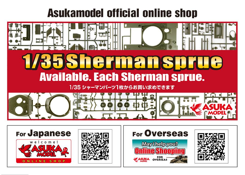 アスカモデル公式オンラインショップではキットやアクセサリー、1/35シャーマンパーツ1枚からなどお買い求めできます。web限定商品なども販売中です!