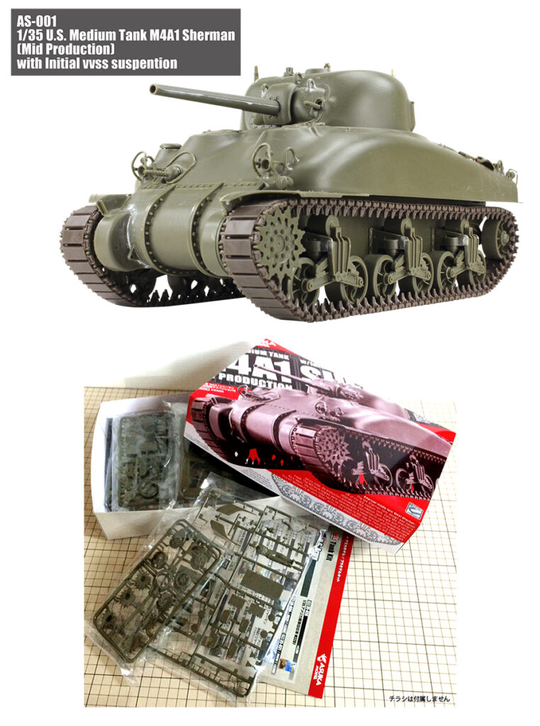 【AS-001】1/35 アメリカ中戦車 M4A1シャーマン中期型(極初期型サスペンション付)