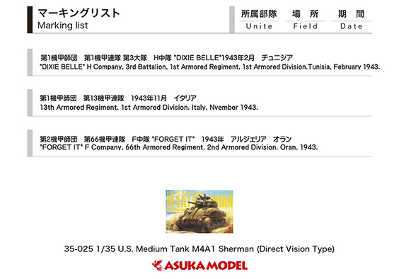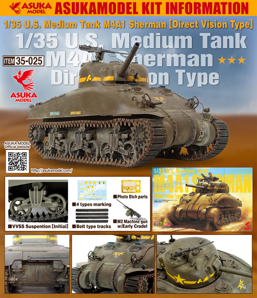 1/35 U.S. Medium Tank M4A1 Sherman (Direct Vision Type) #35-025